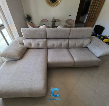 La pulizia del divano è stata impeccabile, il risultato è incredibile! Raccomando assolutamente i servizi di Charlie Clean!
